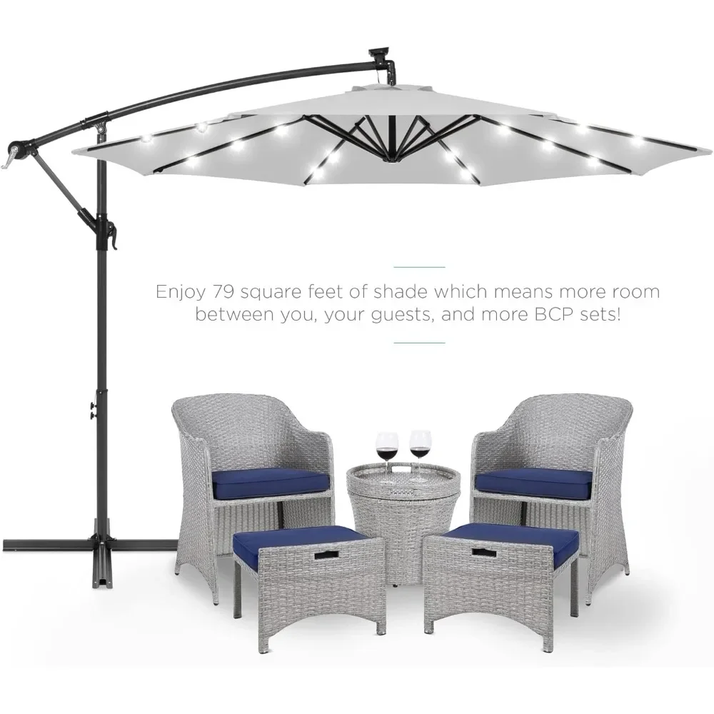 10ft Solar LED Offset Hanging Market Patio Umbrella for Backyard, Poolside,Lawn and Garden w/Easy Tilt Adjustment,Polyester