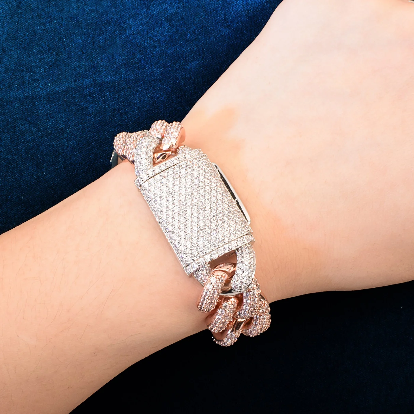 18MM Mixed Color Men's Cuban Chain Bracelet Solid Back Full Zircon Hip Hop Miami Link Fashion Rock Jewelry