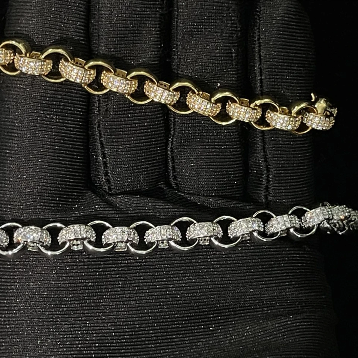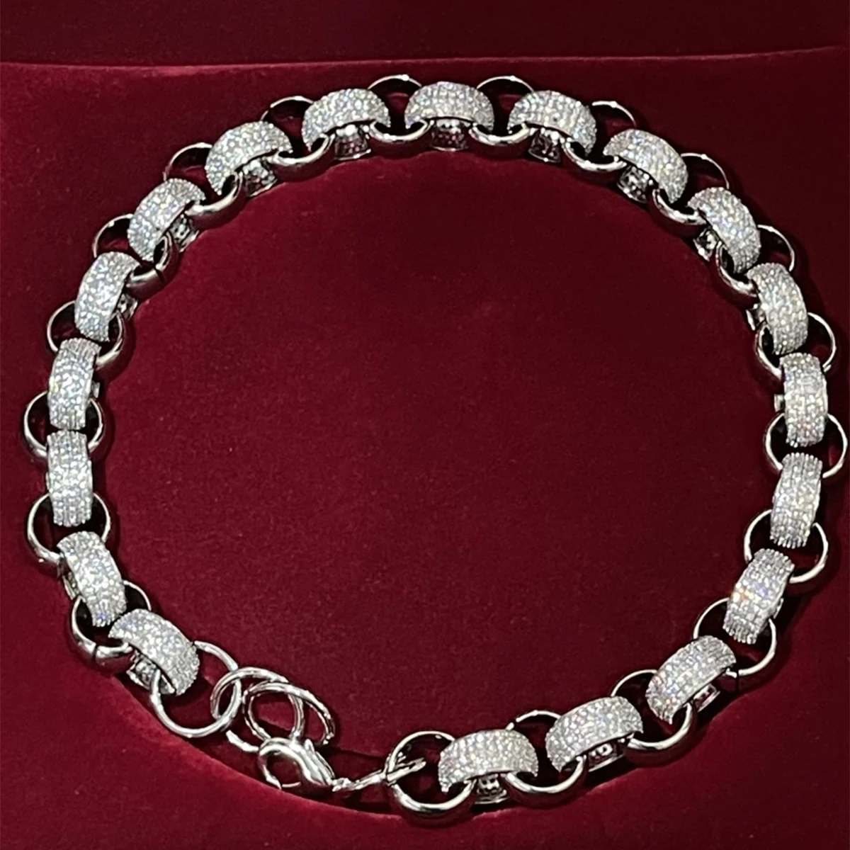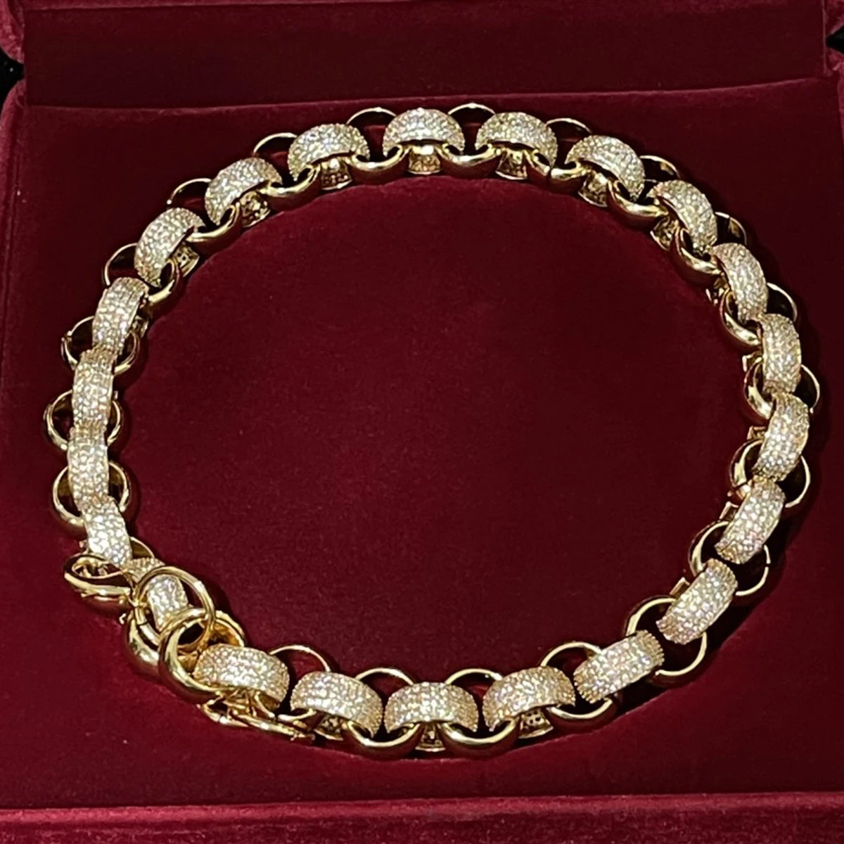 Aokaishen Circle Cuban Link Bracelet Men Copper Chain Iced Out Cubic Zirconia Rapper Rock Hip Hop Jewelry
