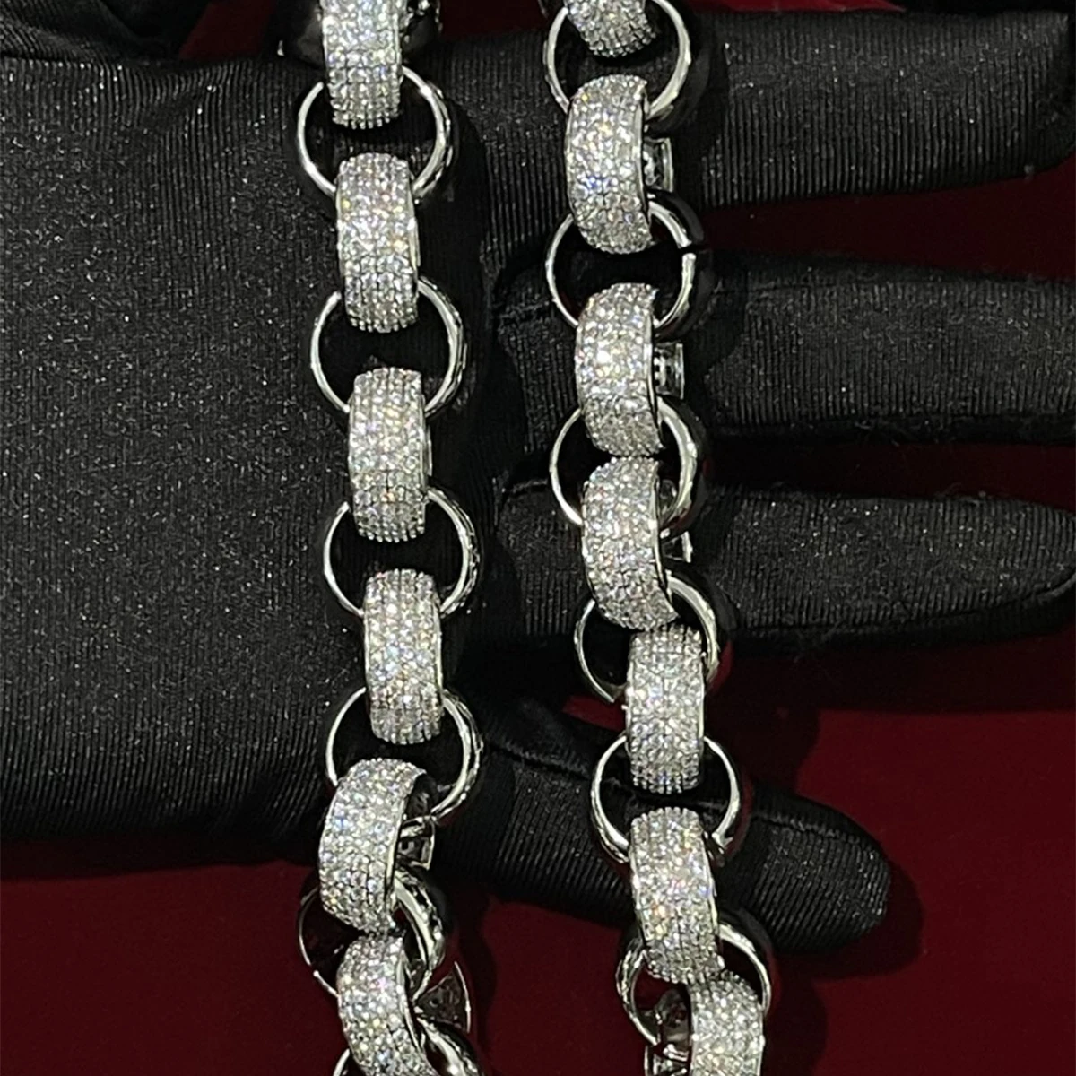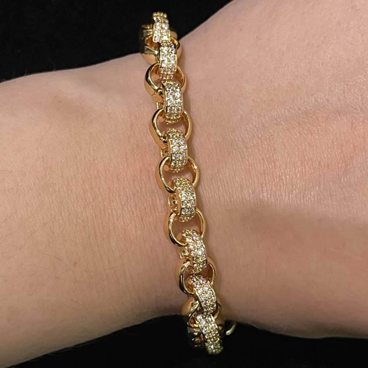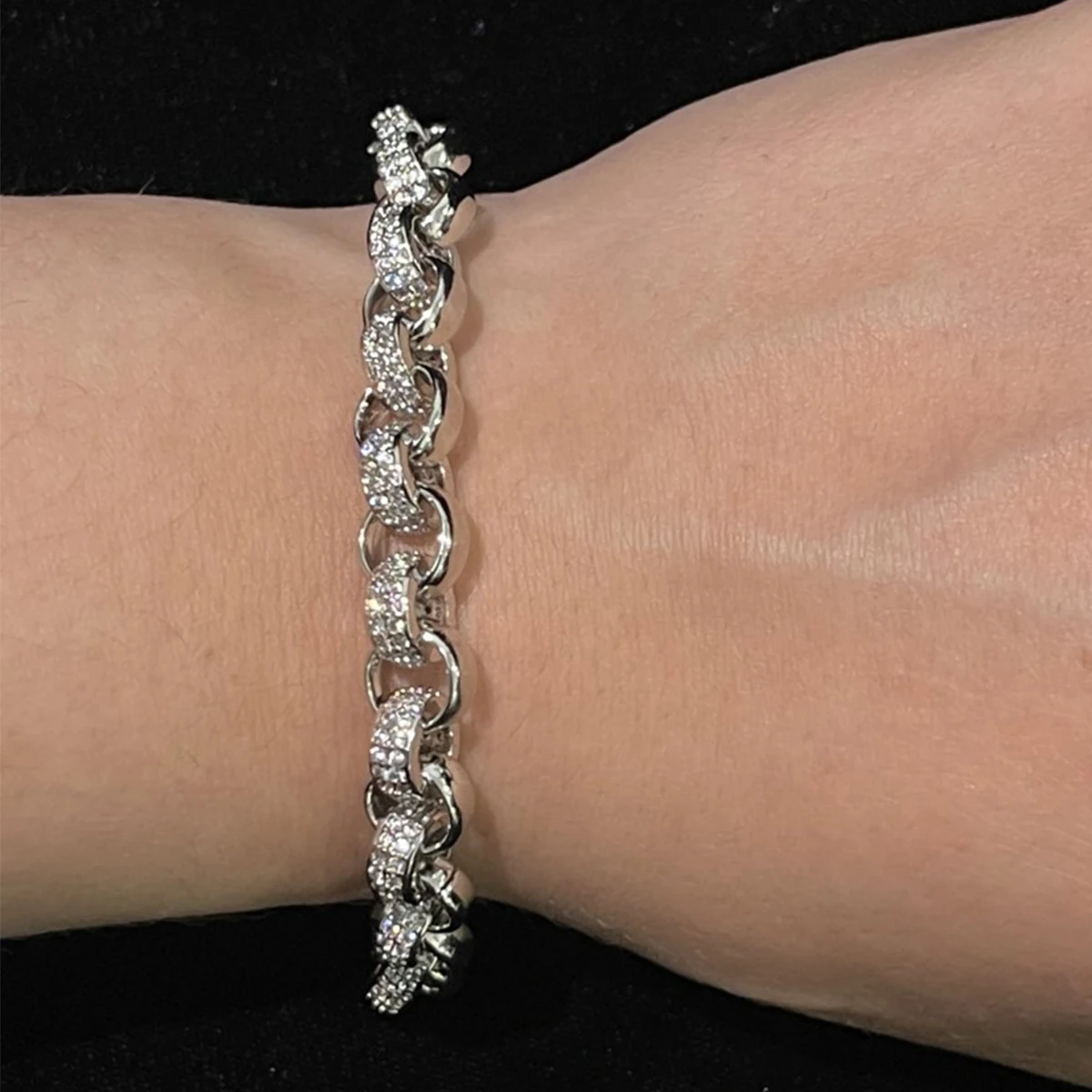 Aokaishen Circle Cuban Link Bracelet Men Copper Chain Iced Out Cubic Zirconia Rapper Rock Hip Hop Jewelry