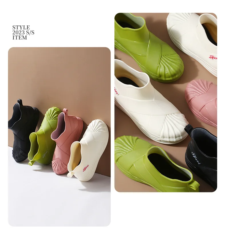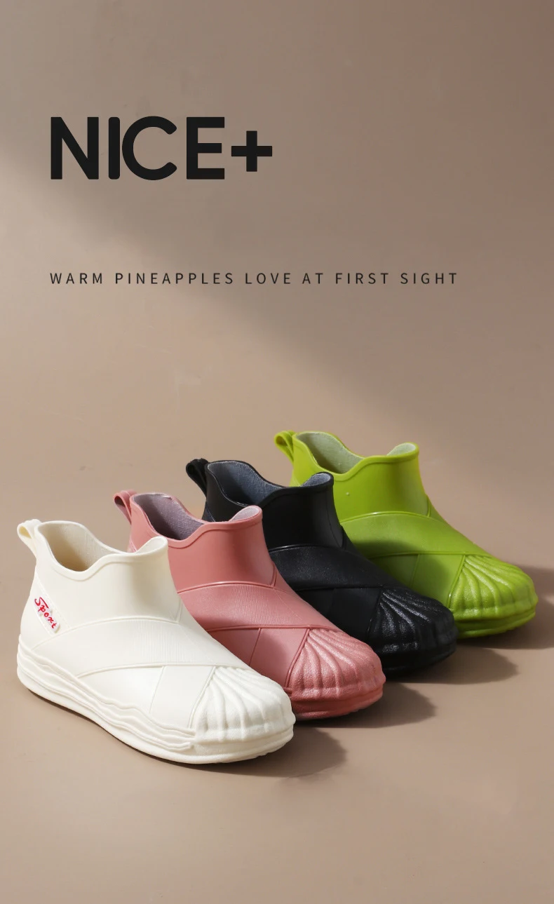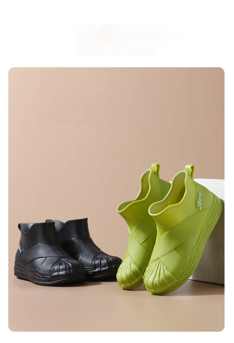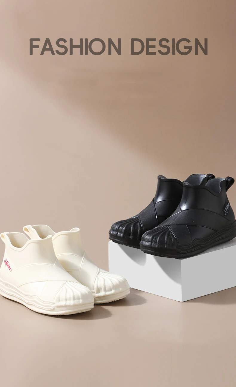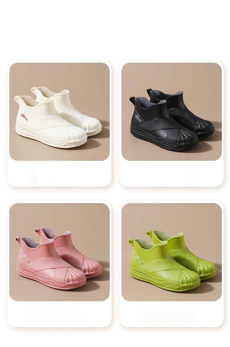 Crestar Women's Short Rain Boots Summer Fashion Ankle Rubber Boot Anti Slip Waterproof Soft-soled Boots New Lady Garden Shoes