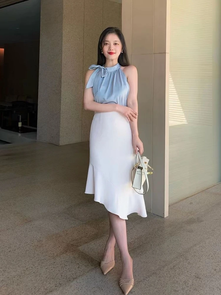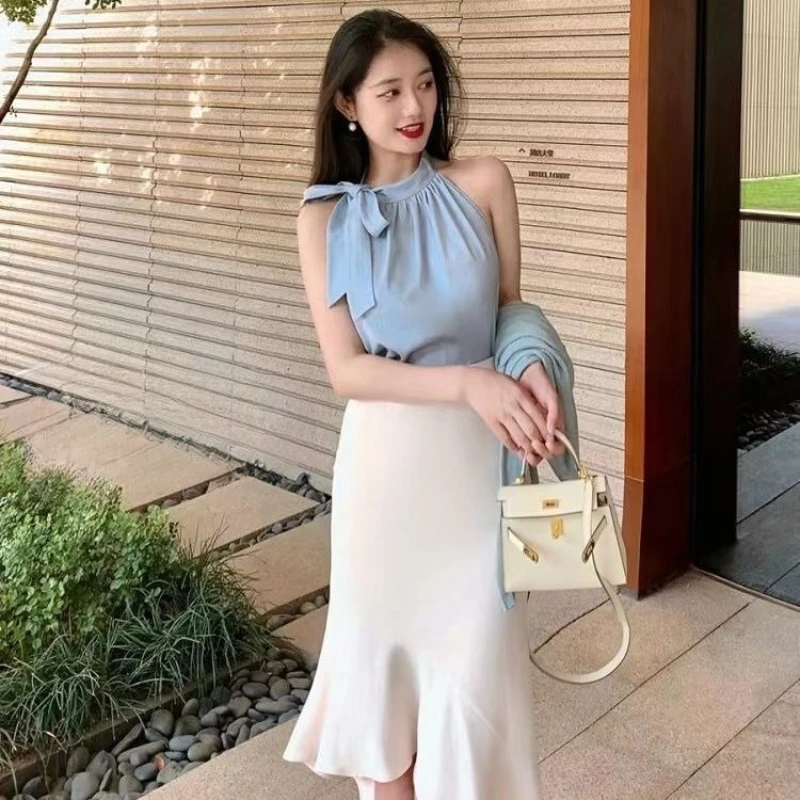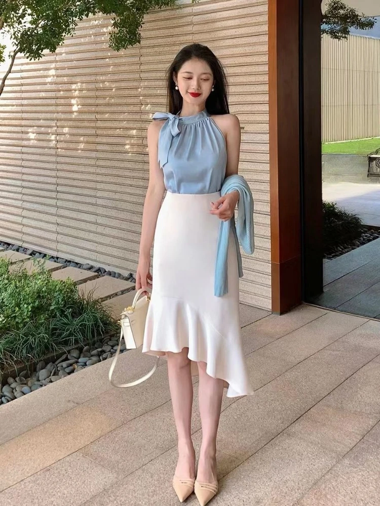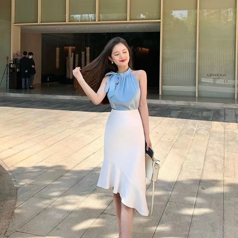 Fishtail Skirt Woman Outfit Summer Fashion 2025 Formal Occasion Clothing Trend Event Sleeveless 2 Pieces Skirt Sets for Women