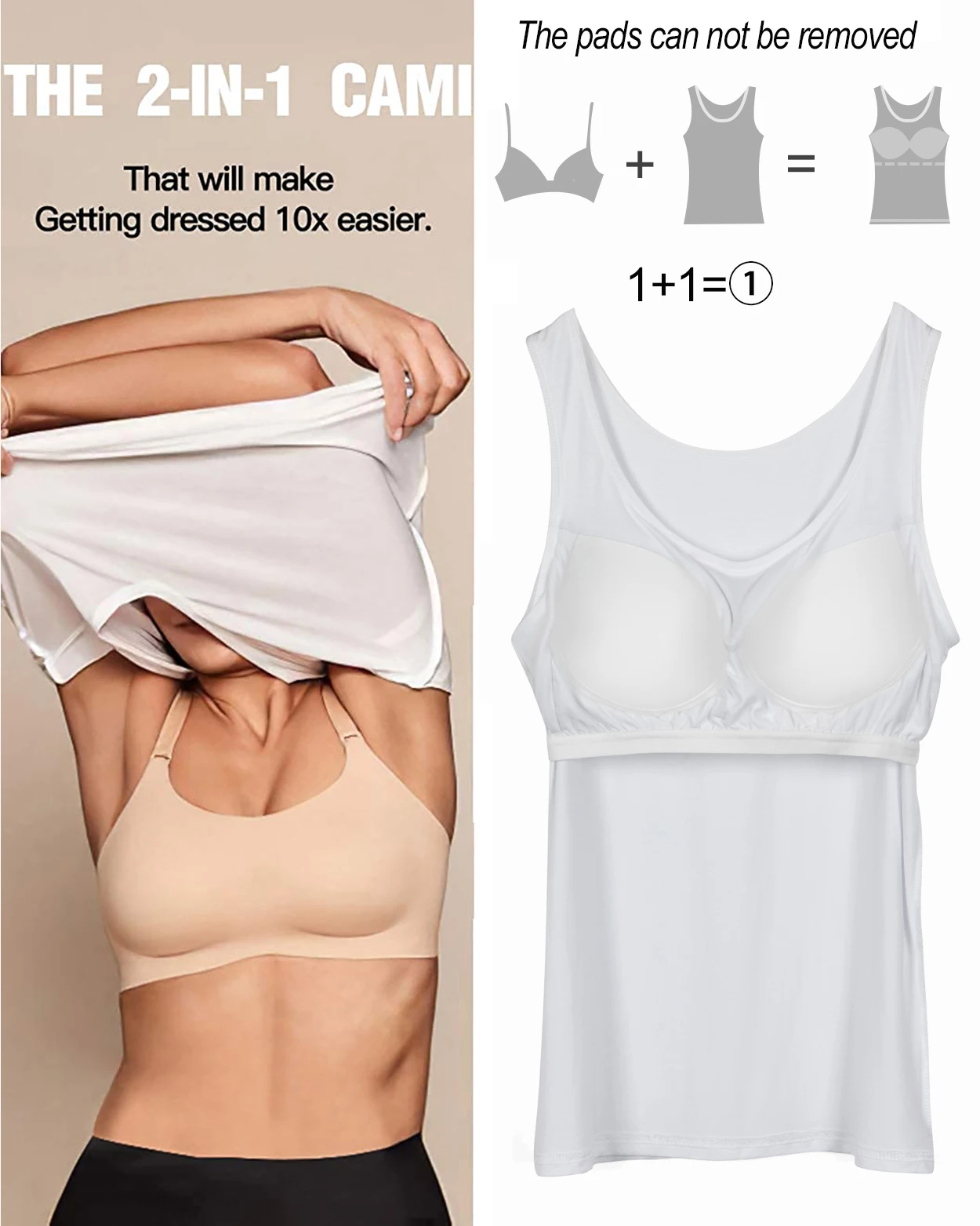 ❤ SPECIAL DESIGN -- Features a scoop neckline, wide straps, and built-in wireless shelf bra.