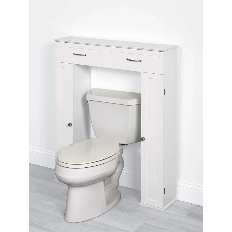 Stylish Bathroom Storage: This over toilet bathroom organizer adds elegance with its raised panel details, classic design, and decorative hardware accents. It blends seamlessly into any bathroom decor, offering both style and functionality.