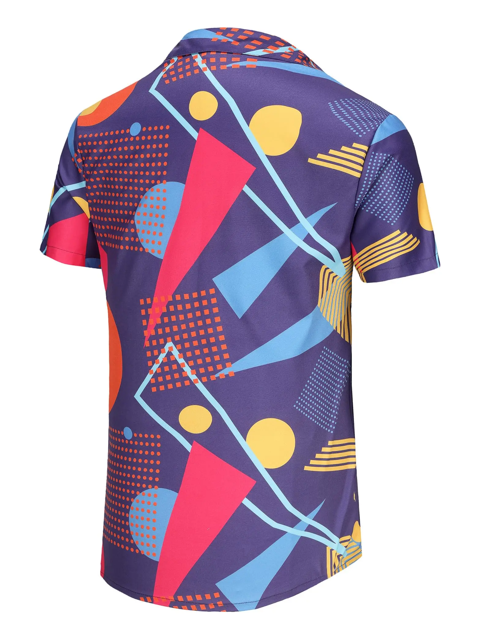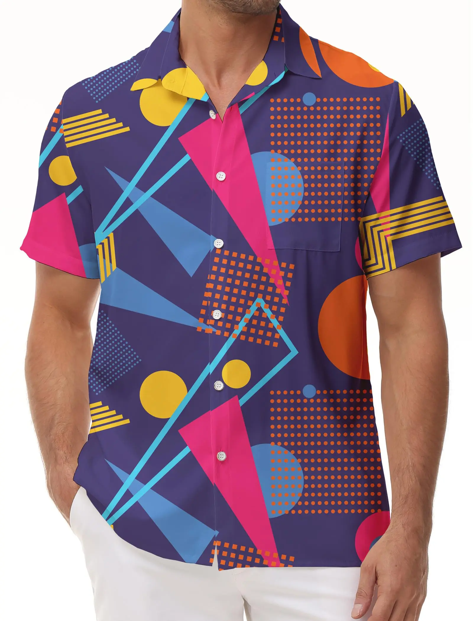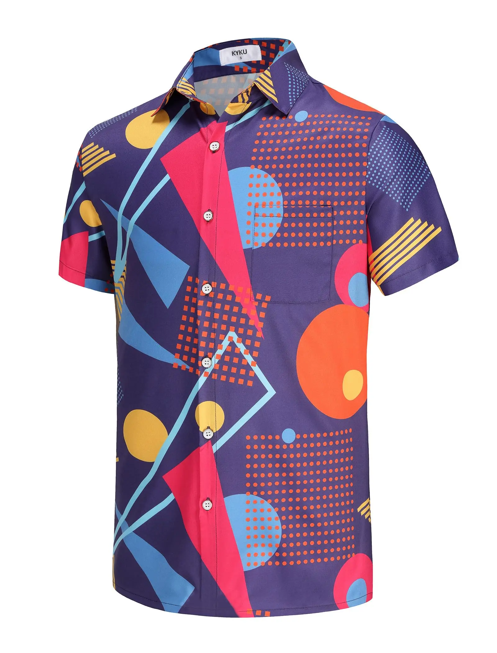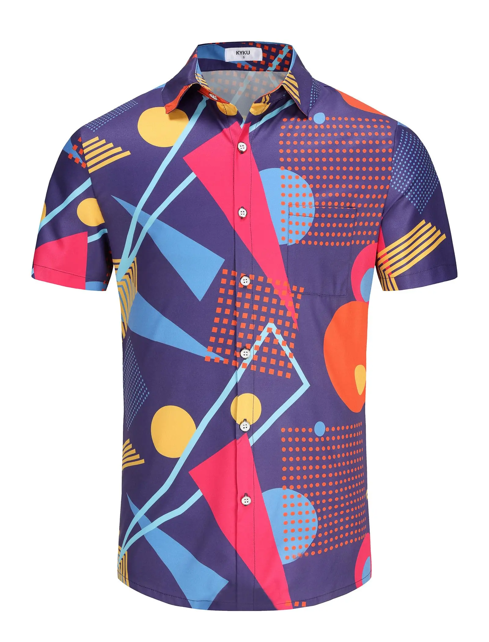 KYKU 80s Costume 90s Clothes Hawaiian Shirt for Men Button Down Shirts Short Sleeve Retro Disco Outfits