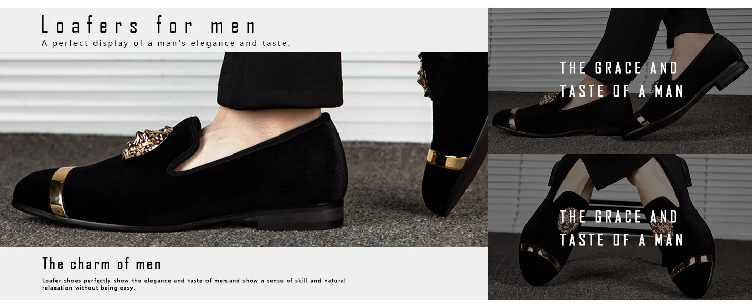 Men Velvet Dress Black Casual Tuxedo Slip-on Glitter Loafers Shoes