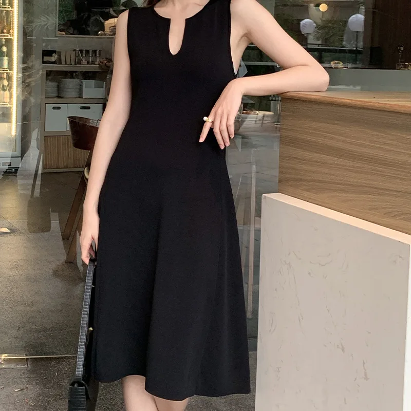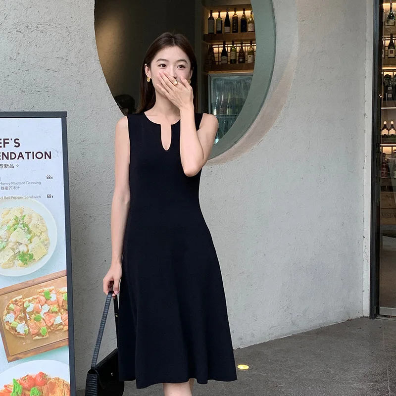 Sleeveless Knit Dress for Women Summer – Elegant A-Line Midi Dress with Keyhole Neckline Old Money Style 2025 Summer