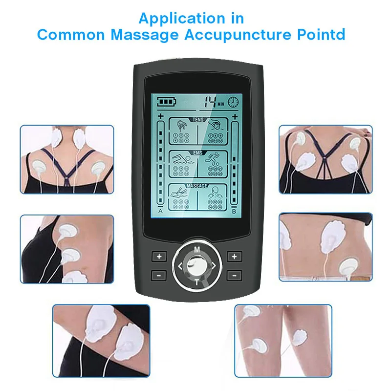 36 Modes TENS Therapy Massager Dual Output USB Charging EMS Muscle Stimulator LCD Backlight Display Back Neck Leg Pain Relief