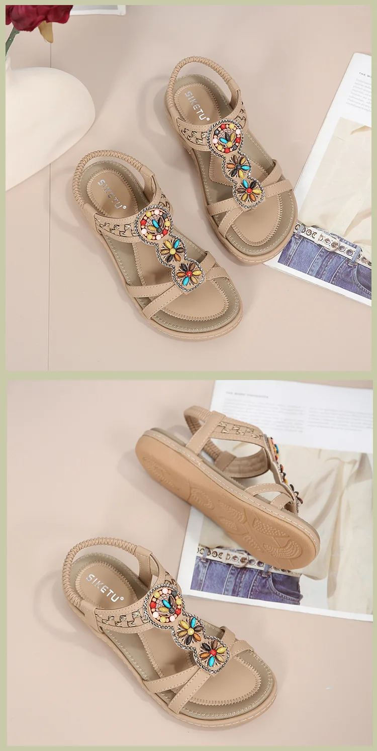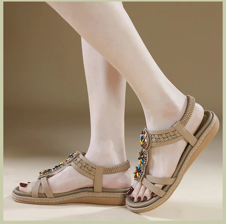 Women's New Summer Bohemian Style Non-slip Flat Sandals Woman Plus Size Soft Bottom Beach Sandals Lady Casual Shoes 36-42